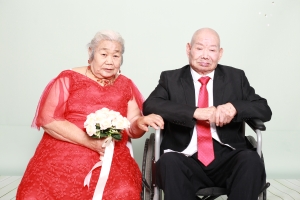 老人樊凤娣说,自己跟老伴都是行动不便的人,身体情况差,除了在楼下车库前跟居民们聊聊天,出门都要依靠家人陪同搀扶,如今能跟老伴拍结婚照,是做梦都不敢想的事,真的很高兴能有这次机会。