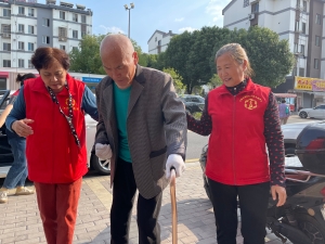 针对部分肢体残疾、行动不便的老年朋友们,高新区杨市社区残疾人工作者小梅还召集网格员和善邻志愿者们一起上门接送,让他们也能参与到幸福的活动中。