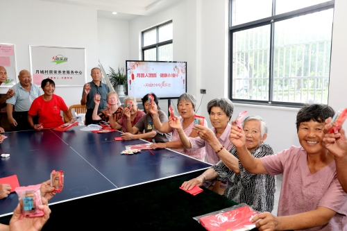 活动现场,传统文化体验区率先点燃氛围。剪纸台前,红纸翻飞,玉兔、桂树、圆月等中秋元素在村民巧手下跃然纸上;兔子灯制作区,志愿者备好材料,村民动手粘贴装饰,几分钟制成可爱兔子灯,现场满是欢笑;猜灯谜环节,灯谜板前聚满人群,大家围坐思索,猜对时的欢呼声让氛围愈发浓厚。随后,江阴市中医肝胆医院医生结合残疾人常见健康问题,带来专项讲座。围绕秋季肝胆养护、慢性病管理、康复训练注意事项,医生用接地气的语言讲解,大家认真聆听并记录要点。讲座后,“医村同行” 义诊开启,医生免费测血压、血糖,还提供日常健康管理建议。活动尾声,志愿者与残疾老人携手制作品尝芋头甜汤与月饼。考虑到饮食需求,甜汤控糖、芋头煮至软糯,月饼也备有低糖、无麸质品类。大家围坐话家常、分享喜悦,暖意满溢现场。
